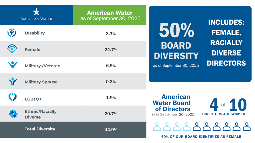 The ID&E Executive Council of American Water serves as a recommending body and liaises with other business functions to promote inclusion, diversity and equity. Every employee of the company is respected for who they are as an individual and for our collective differences as a team. Based on internal and external research and best practices, the council makes recommendations to the Executive Leadership Team for consideration and approval. Once approved, council members collaborate with appropriate groups (e.g., human resources, ID&E champions, business leaders, internal communications, etc.) to implement and/or execute.
