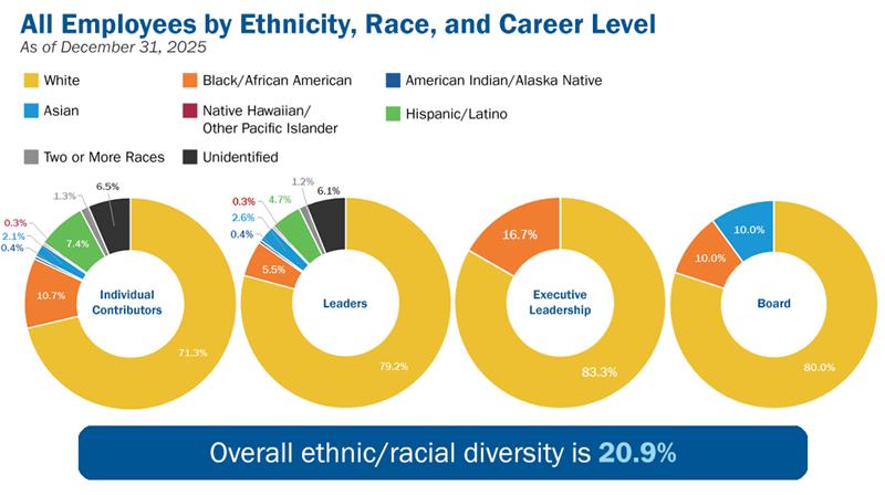We believe that having employees with different ideas, viewpoints, experiences and backgrounds improves our ability to serve our customers. To this end, we are committed to attracting and retaining a workforce that understands the needs of the communities in which we serve.